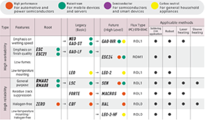 This product features a solid flux core at its center, enabling the simultaneous supply of both solder alloy and flux. It offers a versatile range of advantages, including superior wetting, low splattering, and high reliability. The product is compatible with various soldering methods, ranging from manual soldering irons to automated laser heating.