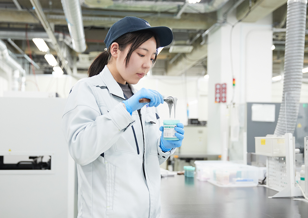 現在は、工程変更や設備変更後の社内検証業務を中心に担当しており、日々の業務の中ではその割合が多くを占めています。また、ソルダペーストのフラックス改良についても、少しずつ任せていただくようになりました。