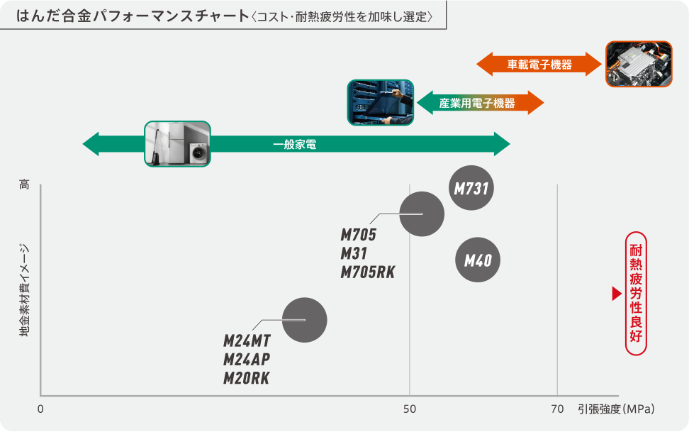 地球環境との調和を念頭に置いて開発したはんだ合金。豊富なラインアップを取りそろえ、お客さまの目的や用途・特性に合わせて最適なはんだ合金を選択していただけます。